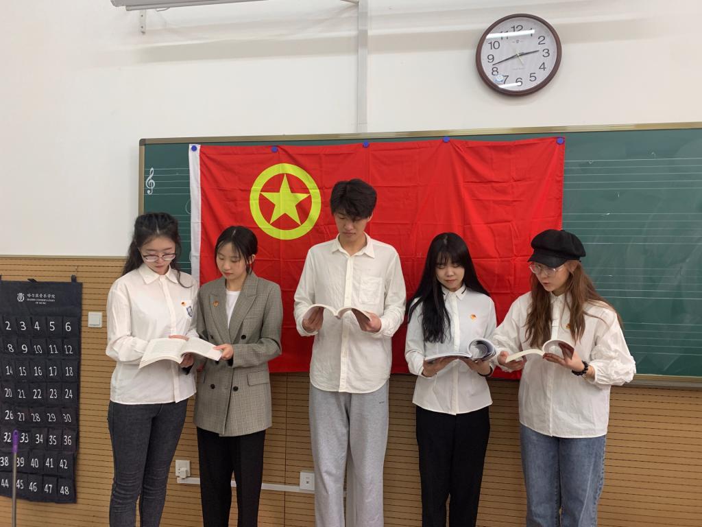 以建党百年为契机,开展党史、新中国史、改革开放史、社会主义发展史学习教育。各团支部选取《星星之火,可以燎原》《为人民服务》《始终把人民放在心中最高位置》《习近平与大学生朋友们》等书籍进行集中诵读并录制音频,引导团员青年学习党史团史、学习习近平青年工作的重要思想、坚定理想信念。