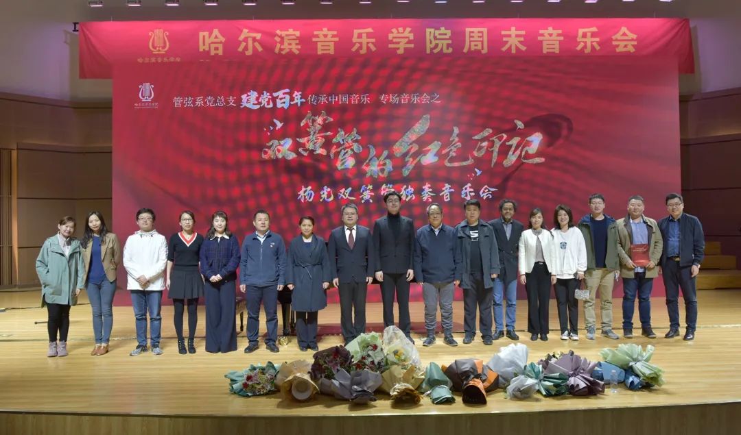 为庆祝中国共产党成立100周年,传承红色基因,4月23日,管弦系党总支在学院音乐厅举办“建党百年·传承中国音乐”专场音乐会第二场——“双簧管的红色印记”杨光双簧管独奏音乐会。本场音乐会由管弦系副主任、副教授、中俄交响乐团团长杨光和管弦系艺术指导刘威辰共同演绎。副院长宋立权,纪委书记、党委委员张丽波出席音乐会,部分单位负责人及教学系师生参加了音乐会。