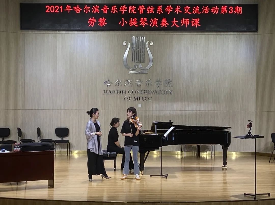 大师课上,我院小提琴专业学生郑轶文、赵浩航、孟凡惠分别演奏了《卡巴列夫斯基青年协奏曲》《莫扎特第三协奏曲第一乐章》《巴赫fuga》。随后,劳黎在音乐方向感、声音传达、揉弦握弓方式等方面给予个性化指导,她结合自身求学经历和教学经验,着重强调了演奏过程中音乐层次感的重要性,使现场师生获益良多。