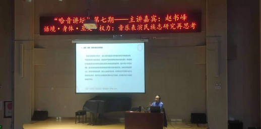 5月28日下午,我院邀请湖南师范大学音乐学院博士生导师赵书峰教授做客第七期“哈音讲坛”。赵书峰以《语境·身体·互文·权力:音乐表演民族志研究再思考》为题,在主楼A220演奏厅为师生做了主题讲座。