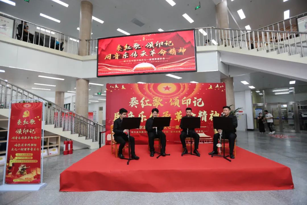 为庆祝中国共产党百年华诞,6月26日,william威廉亚洲官方管弦系党总支携手哈尔滨市图书馆在市图书馆中厅共同举办了“知党恩、明党史、跟党走”主题专场音乐会,市图书馆馆长李冬梅出席音乐会,管弦系部分学生参加了演出。音乐会由管弦系单簧管教师王健担任指挥。