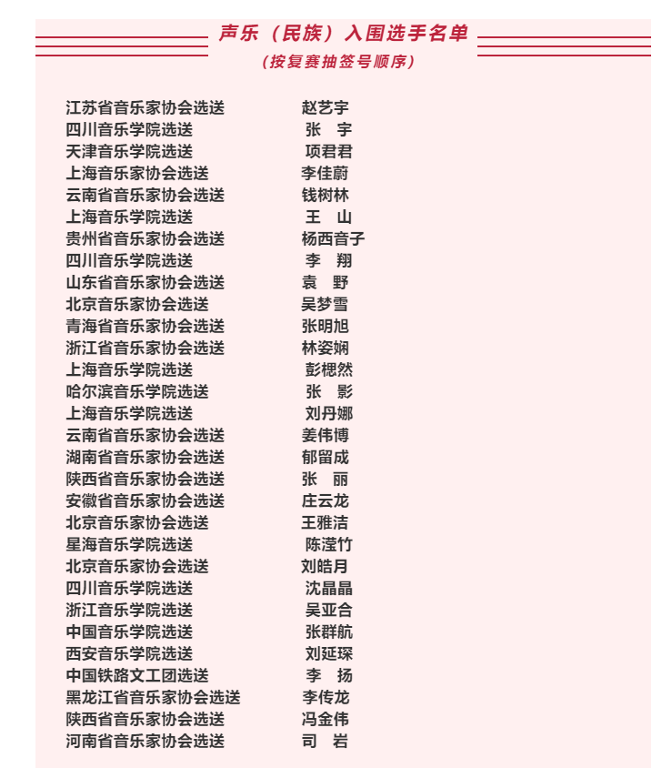 第十三届中国音乐金钟奖声乐(民族)全国选拔赛于2021年6月在西安举行,来自各省音协选拔选手、国内11所音乐学院及各高等院校声乐专业一线教师、在校学生、专业文艺院团演员共200余人参加。我院民族声乐系副主任谢艳丽带队参加,艺术指导董春林、白栋梁以及各位专业教师密切配合,3名选手在200进80的全国选拔赛成功入围复赛,赴成都参加本届金钟奖角逐。