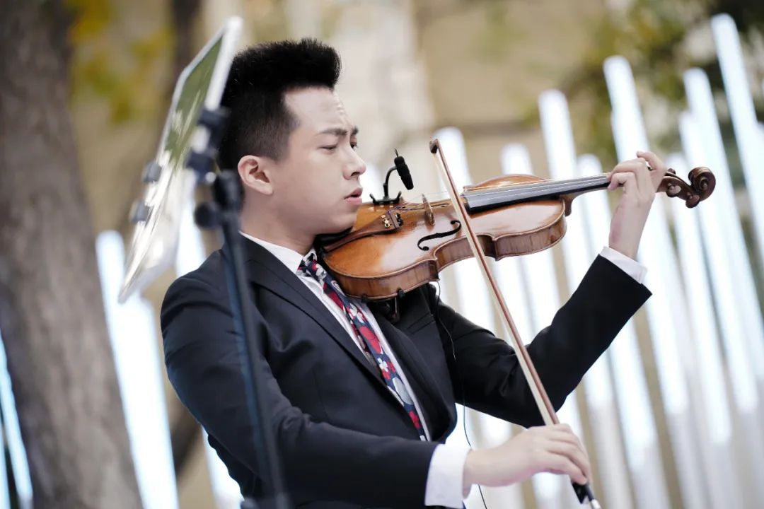 他作为小提琴独奏领奏倾情献艺,演奏了维瓦尔第《四季·秋》第一乐章,优美动人的旋律、精湛的演奏技巧令现场观众尽享经典的魅力,精准的音乐诠释和热情洋溢的演奏风格,获得现场观众的热烈掌声。