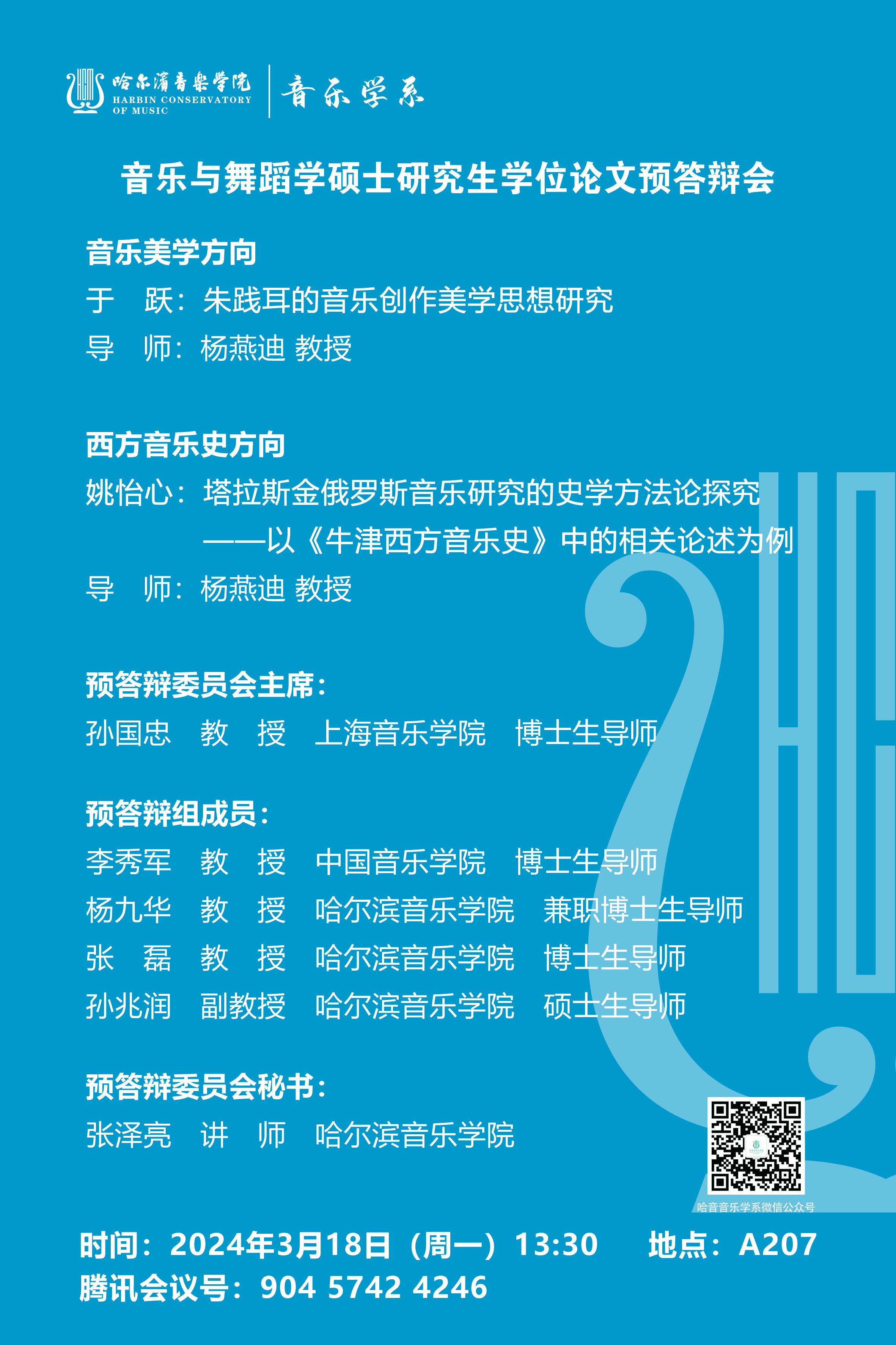 音乐与舞蹈学硕士研究生学位论文预答辩会(音乐美学方向、西方音乐史方向)