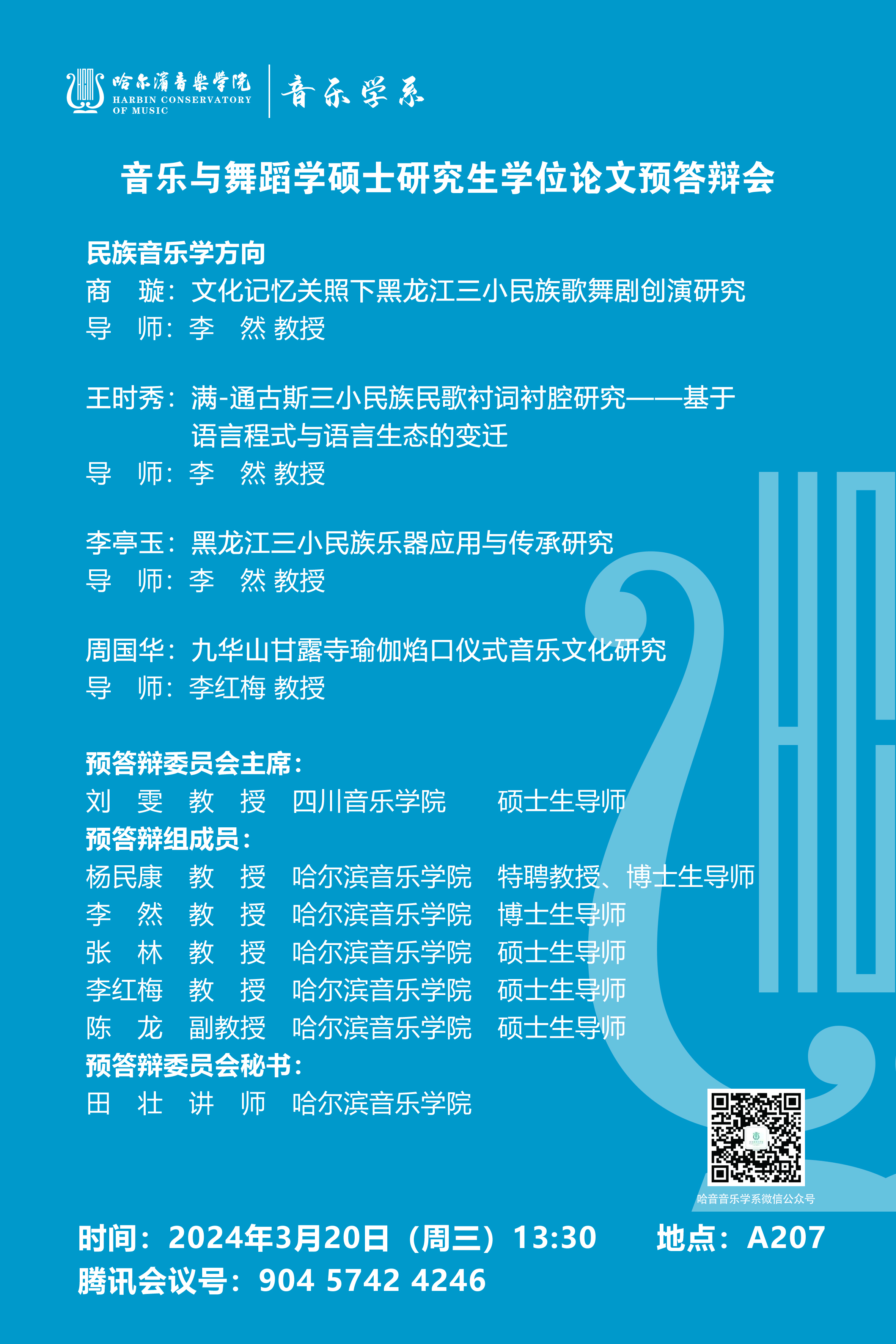 音乐与舞蹈学硕士研究生学位论文预答辩会(民族音乐学方向)
