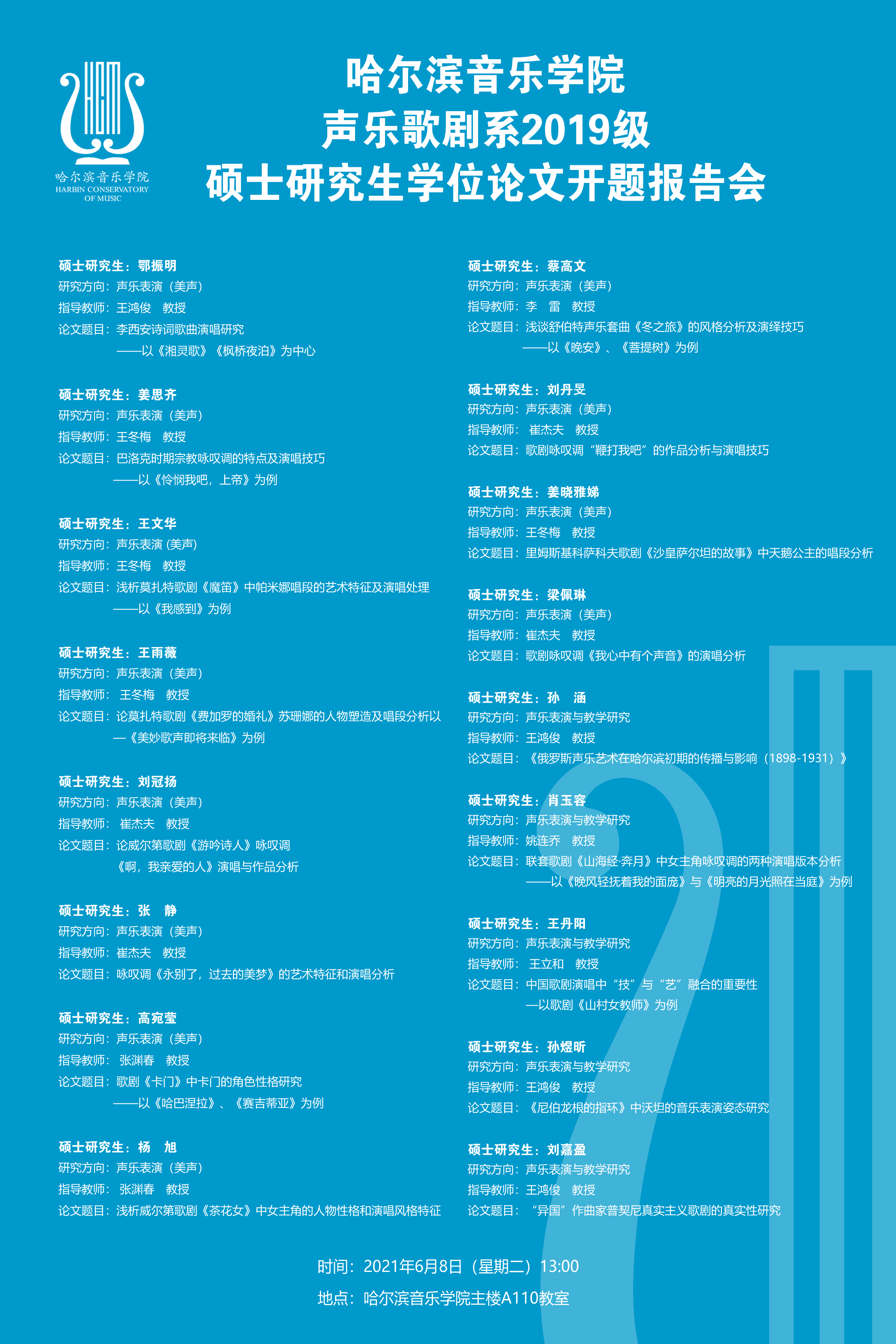 声乐歌剧系2019级硕士研究生学位论文开题报告会