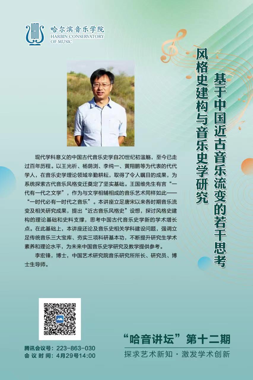 “哈音讲坛”第十二期 ——《风格史建构与音乐史学研究——基于中国近古音乐流变的若干思考》