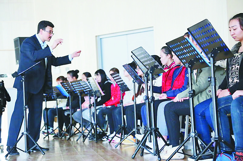 多布罗沃利斯基老师正在指挥中国学生合唱