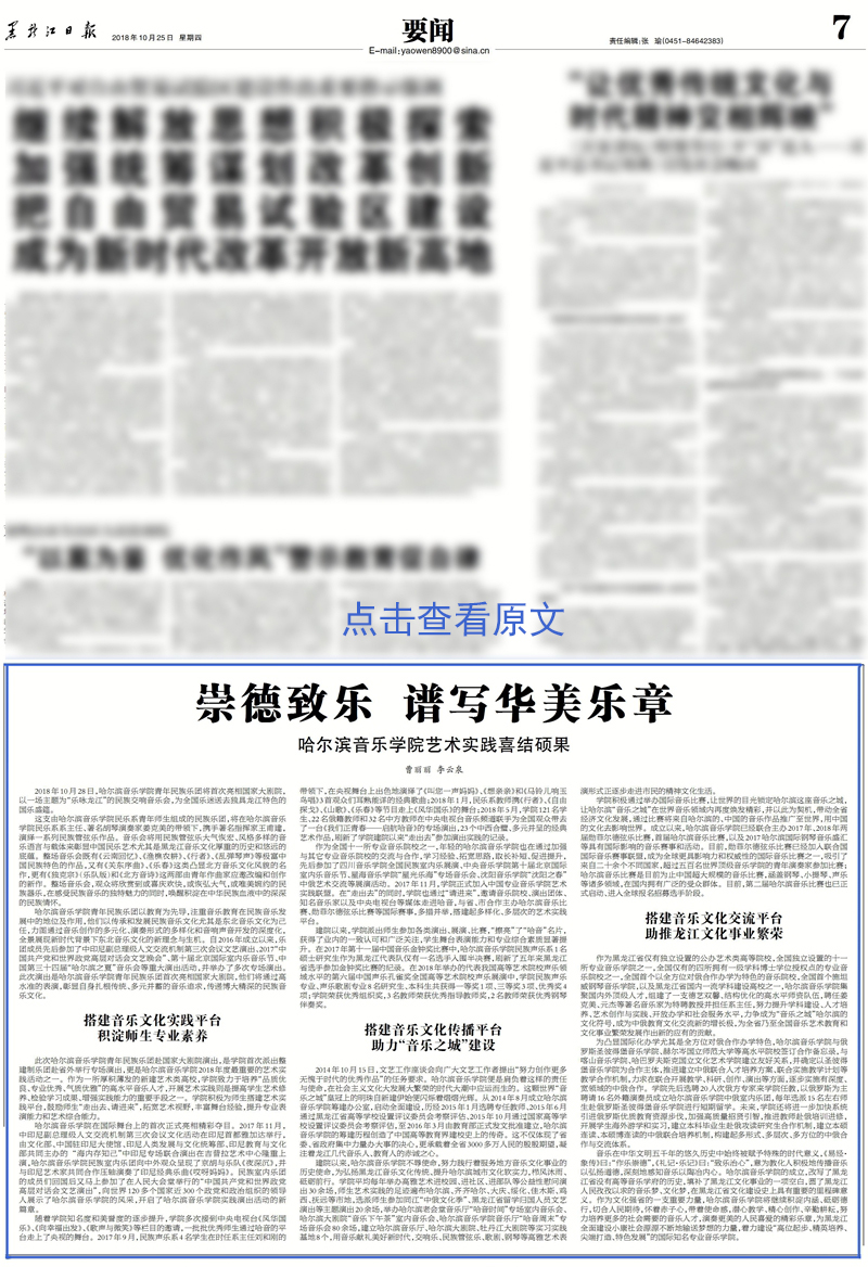 黑龙江日报:崇德致乐 谱写华美乐章
