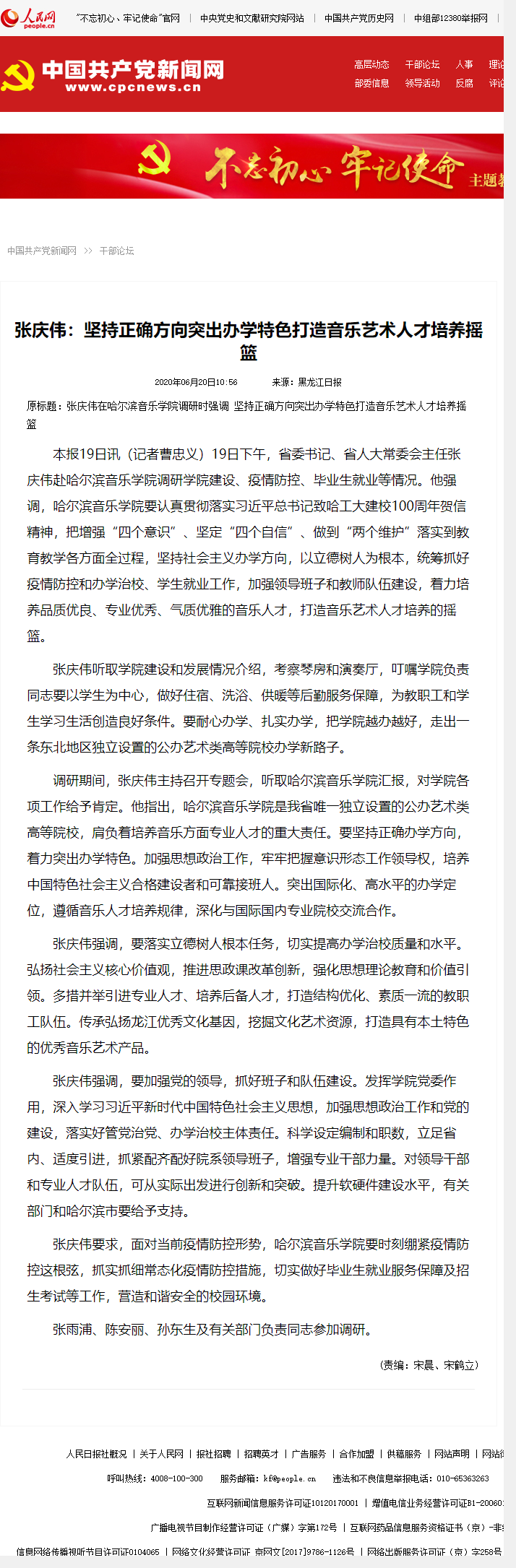 中国共产党新闻网:张庆伟:坚持正确方向突出办学特色打造音乐艺术人才培养摇篮