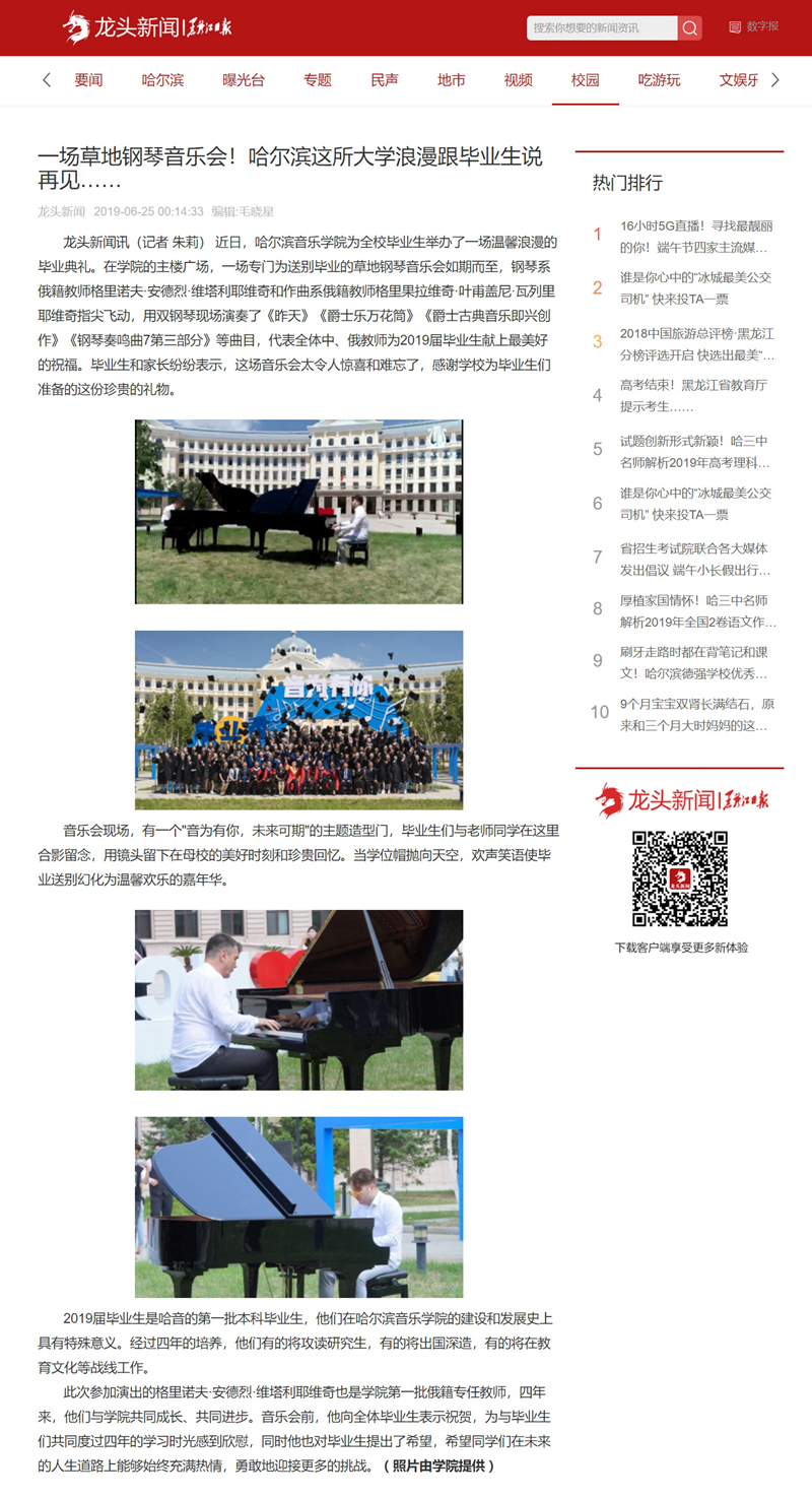 龙头新闻:一场草地钢琴音乐会!哈尔滨这所大学浪漫跟毕业生说再见
