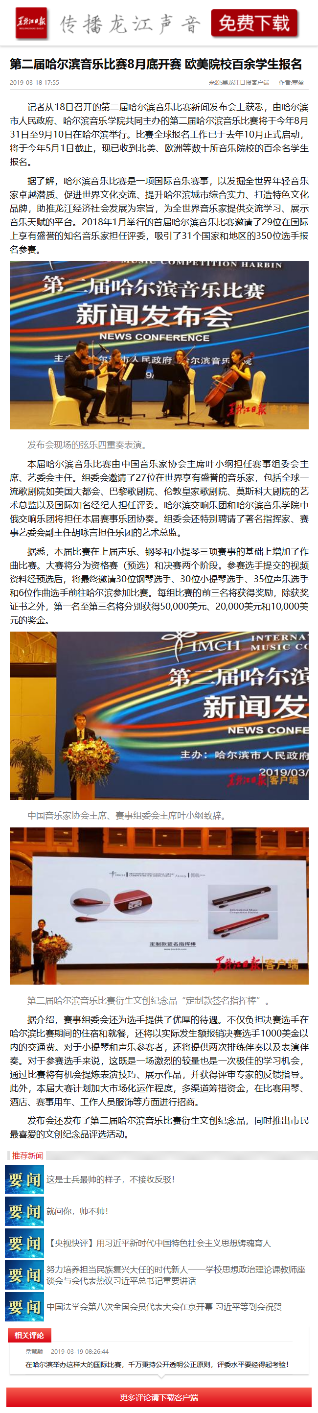 黑龙江日报:第二届哈尔滨音乐比赛8月底开赛 欧美院校百余学生报名