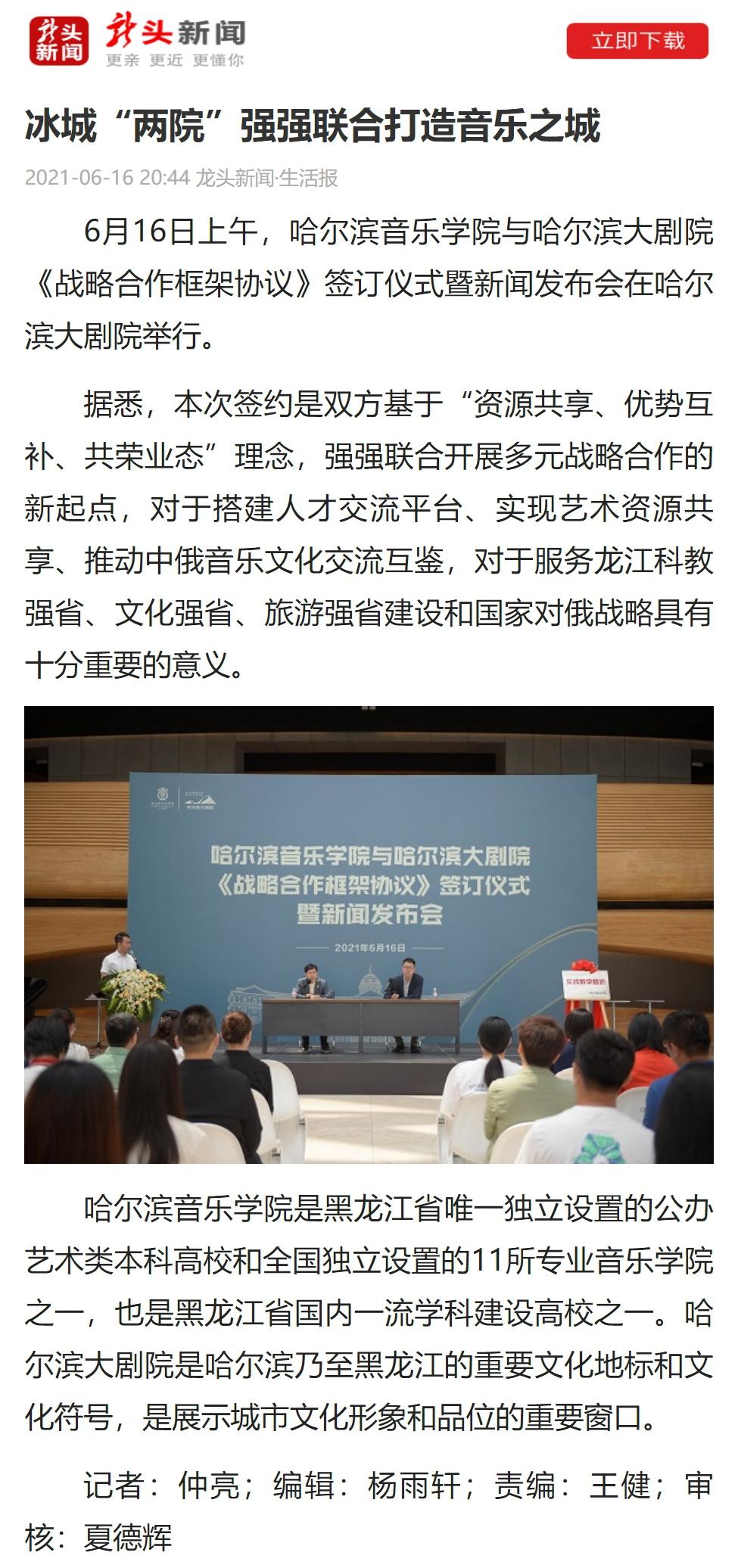 龙头新闻:冰城“两院”强强联合打造音乐之城