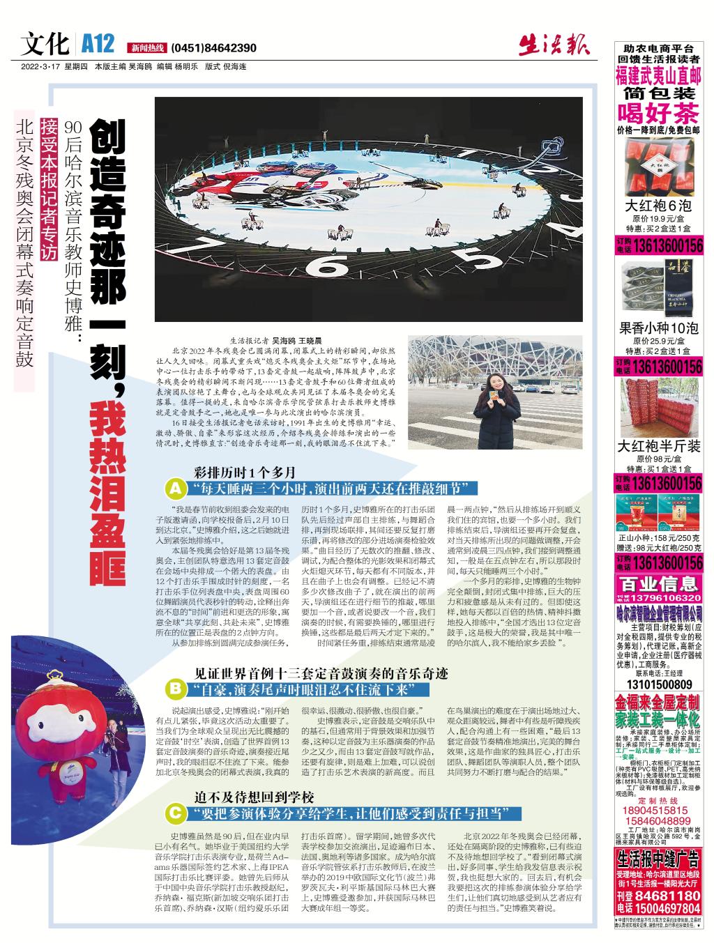 下一条:龙头新闻:北京冬残奥会闭幕式奏响定音鼓,90后哈尔滨音乐教师史博雅:创造奇迹那一刻,我热泪盈眶