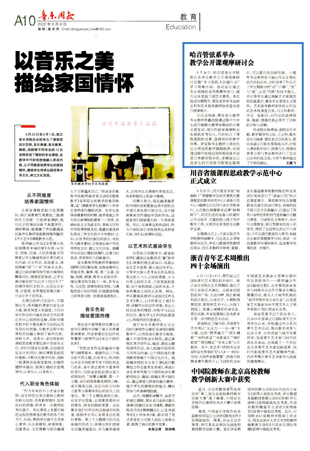 在活动现场,管弦系大提琴专业教师李鑫在授课过程中与学生进行海顿大提琴协奏曲的合奏示范互动,他从作曲家海顿职业生涯的思考切入,巧妙结合了课程思政的元素,获得很好的教学效果。萨克斯专业教师王亮依托自主研发的教学辅助软件,在授课过程中体现出利用前沿技术促进日常教学数字化、多媒体化以及学生的日常练习管理互联网化、可以量化的创新思路。小提琴专业教师张可涵从作品宏观的曲式结构出发,分析讲演了作品引子和主题部分的“动”与“静”、“张”与“弛”、以及“四换”的技术要点,并引导学生通过理解艺术家强烈的民族意识,激发学生爱国主义情怀。艺术指导教师张欣悦从作品的艺术性角度出发,与主科教师、学生一起配合,对作品的旋律线条、强弱、情感的表达等作了详细的分析与讲解。