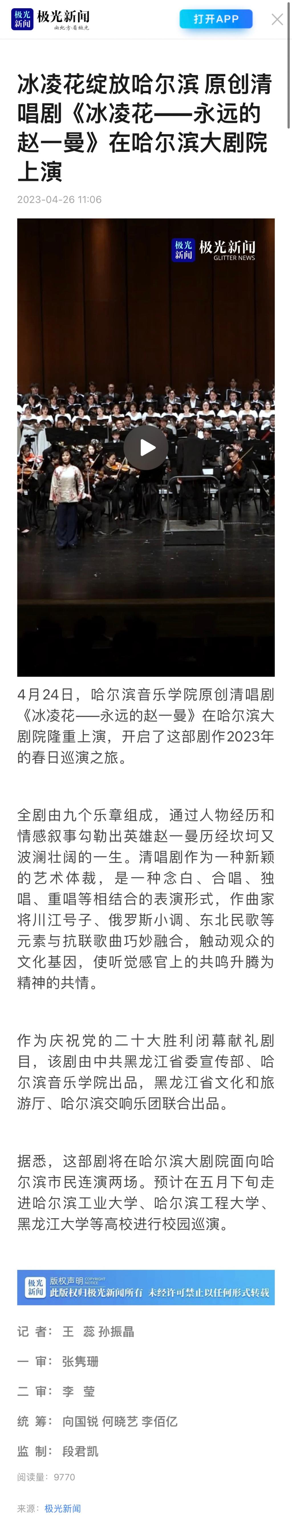 下一条:龙头新闻:原创清唱剧《冰凌花——永远的赵一曼》在哈尔滨大剧院开启春日巡演