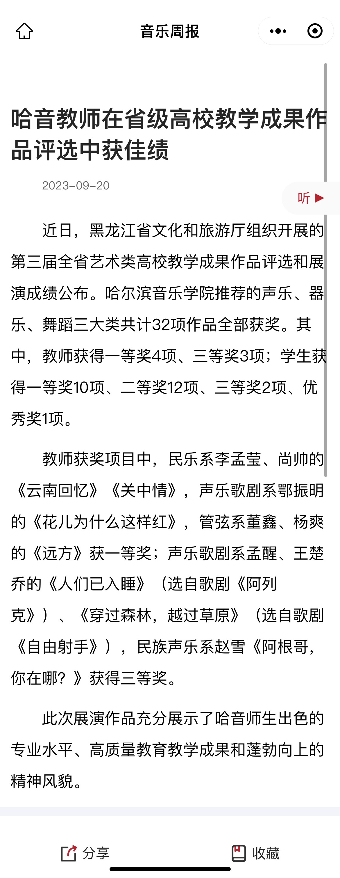 音乐周报:哈音教师在省级高校教学成果作品评选中获佳绩
